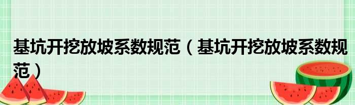 基坑开挖放坡系数规范(基坑开挖放坡系数规范)