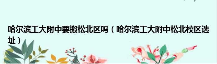 哈尔滨工大附中要搬松北区吗(哈尔滨工大附中松北校区选址)