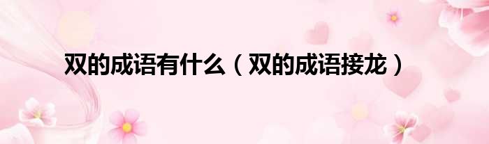 大家好,今天小六子来为大家解答以下的问题,关于双的成语有什么,双的成语接龙这个很多人还不知道,现在让我们一起来看看吧!