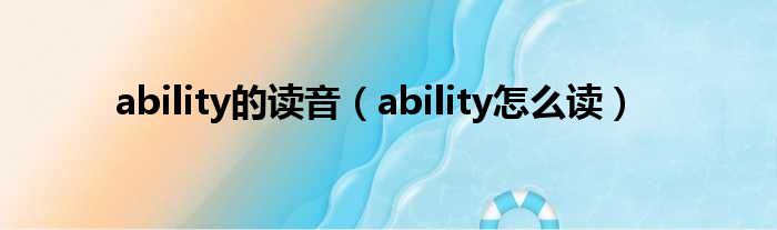 导读 大家好,今天小六子来为大家解答以下的问题,关于ability的读音,ability怎么读这个很多人还不知道,现在让我们一起来看看吧!1、ability,