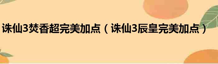 诛仙3焚香超完美加点(诛仙3辰皇完美加点)