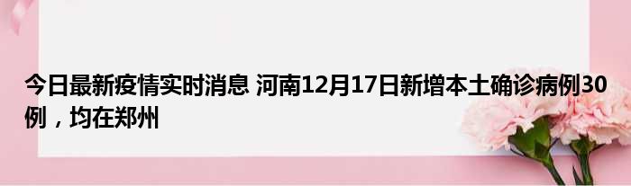 今日最新疫情实时消息 河南12月17日新增本土确诊病例30例,均在郑州