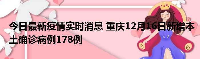 重庆卫健委通报,12月16日0—24时,全市报告新增本土确诊病例178例,治愈出院本土确诊病例121例