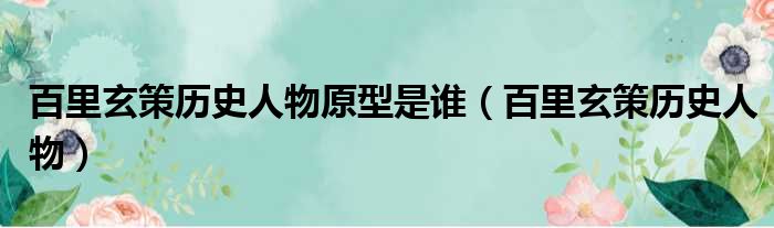 百里玄策历史人物原型是谁(百里玄策历史人物)