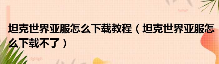 导读 大家好,今天小六子来为大家解答以下的问题,关于坦克世界亚服怎么下载教程,坦克世界亚服怎么下载不了这个很多人还不知道,现在让我们一起
