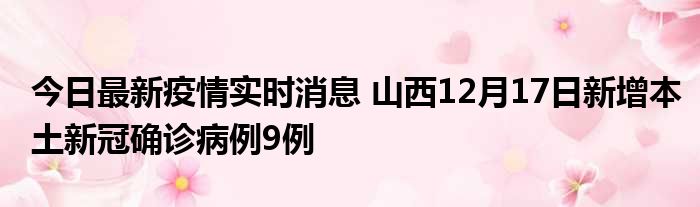 山西卫健委通报,2022年12月17日0-24时,山西省新增本土新冠肺炎确诊病例9例(晋城市城区1例;朔州市朔城区1例;运城市盐湖区2例;忻州市