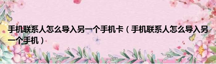手机联系人怎么导入另一个手机卡(手机联系人怎么导入另一个手机)