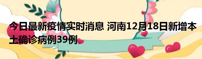 河南卫健委通报,12月18日0—24时,全省新增本土确诊病例39例(郑州市39例)无新增境外输入确诊病例18例本土确诊病例治愈出院(郑州市18例)