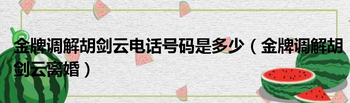 金牌调解胡剑云电话号码是多少(金牌调解胡剑云离婚)