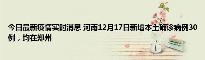 今日最新疫情实时消息 河南12月17日新增本土确诊病例30例,均在郑州