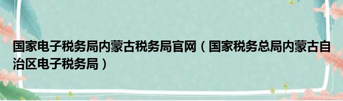 导读 大家好,今天小六子来为大家解答以下的问题,关于国家电子税务局内蒙古税务局官网,国家税务总局内蒙古自治区电子税务局这个很多人还不知道