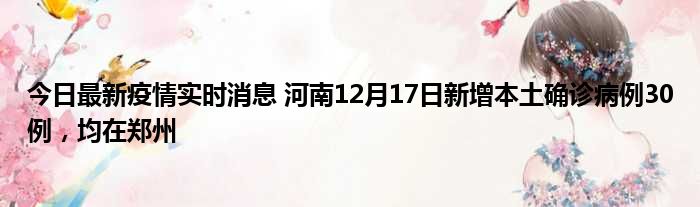 今日最新疫情实时消息 河南12月17日新增本土确诊病例30例,均在郑州
