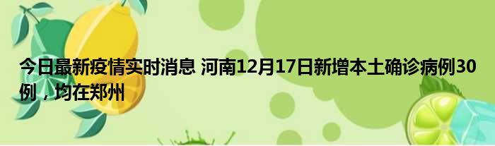 今日最新疫情实时消息 河南12月17日新增本土确诊病例30例,均在郑州