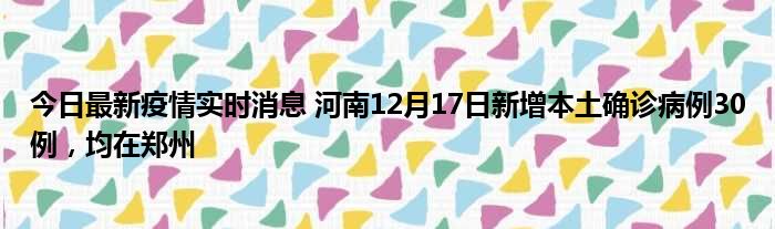 今日最新疫情实时消息 河南12月17日新增本土确诊病例30例,均在郑州