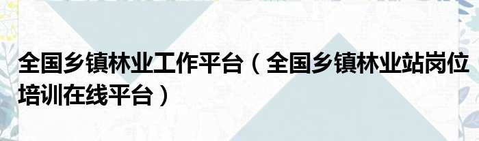 导读 大家好,今天小六子来为大家解答以下的问题,关于全国乡镇林业工作平台,全国乡镇林业站岗位培训在线平台这个很多人还不知道,现在让我们一