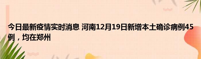 今日最新疫情实时消息 河南12月19日新增本土确诊病例45例,均在郑州