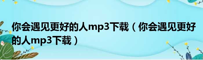 你会遇见更好的人mp3下载(你会遇见更好的人mp3下载)