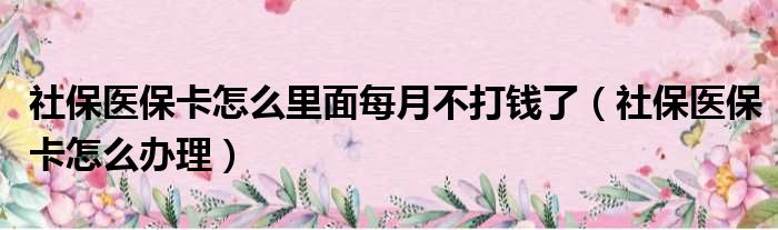 导读 大家好,今天小六子来为大家解答以下的问题,关于社保医保卡怎么里面每月不打钱了,社保医保卡怎么办理这个很多人还不知道,现在让我们一起