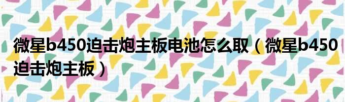 微星b450迫击炮主板电池怎么取(微星b450迫击炮主板)