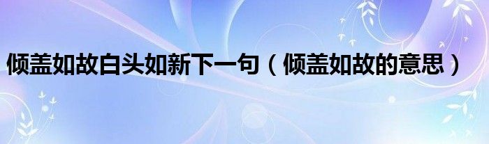 倾盖如故白头如新下一句(倾盖如故的意思)