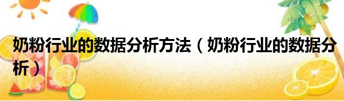 奶粉行业的数据分析方法(奶粉行业的数据分析)