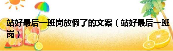 大家好,今天小六子来为大家解答以下的问题,关于站好最后一班岗放假了的文案,站好最后一班岗这个很多人还不知道,现在让我们一起来看看吧!