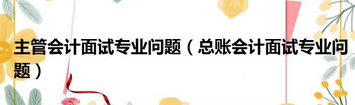 导读 大家好,今天小六子来为大家解答以下的问题,关于主管会计面试专业问题,总账会计面试专业问题这个很多人还不知道,现在让我们一起来看看吧