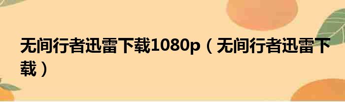 无间行者迅雷下载1080p(无间行者迅雷下载)