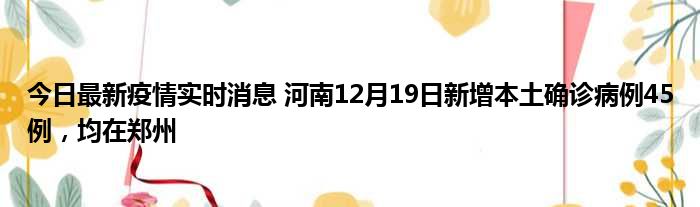 今日最新疫情实时消息 河南12月19日新增本土确诊病例45例,均在郑州