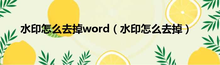 水印怎么去掉word(水印怎么去掉)