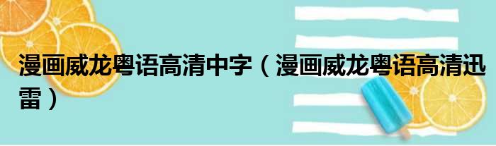 漫画威龙粤语高清中字(漫画威龙粤语高清迅雷)