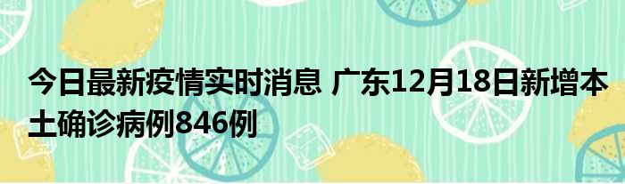 广东卫健委通报,12月18日0-24时,全省新增本土确诊病例846例(广州374例,深圳70例,珠海59例,汕头45例,佛山42例,韶关16例,河源1例