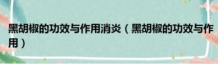 黑胡椒的功效与作用消炎(黑胡椒的功效与作用)