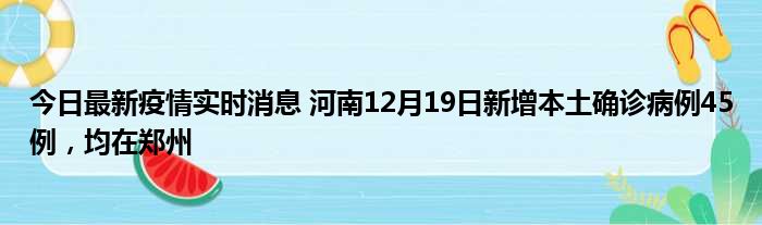 今日最新疫情实时消息 河南12月19日新增本土确诊病例45例,均在郑州