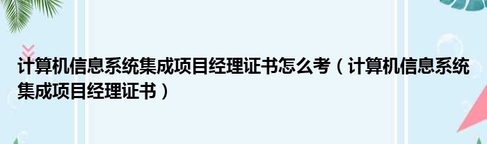 计算机信息系统集成项目经理证书怎么考(计算机信息系统集成项目经理证书)
