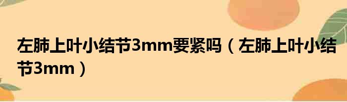 左肺上叶小结节3mm要紧吗(左肺上叶小结节3mm)