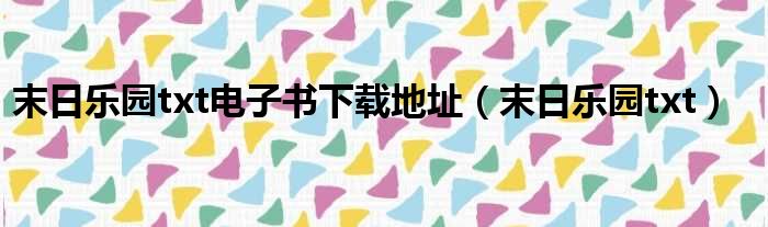 导读 大家好,今天小六子来为大家解答以下的问题,关于末日乐园txt电子书下载地址,末日乐园txt这个很多人还不知道,现在让我们一起来看看吧!1、