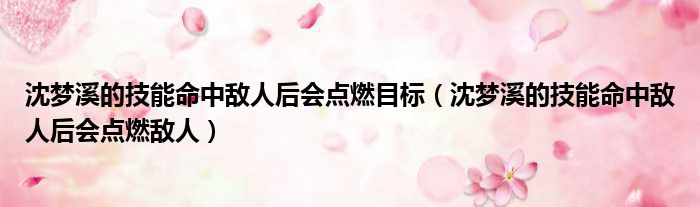 沈梦溪的技能命中敌人后会点燃目标(沈梦溪的技能命中敌人后会点燃敌人)