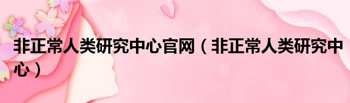 导读 大家好,今天小六子来为大家解答以下的问题,关于非正常人类研究中心官网,非正常人类研究中心这个很多人还不知道,现在让我们一起来看看吧