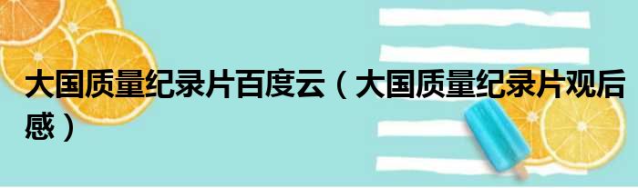 大国质量纪录片百度云(大国质量纪录片观后感)