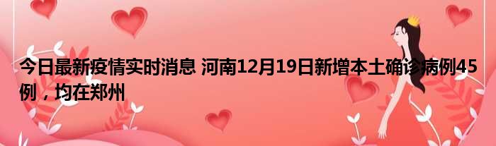 河南卫健委通报,12月19日0—24时,全省新增本土确诊病例45例(郑州市45例)无新增境外输入确诊病例21例本土确诊病例治愈出院(郑州市18