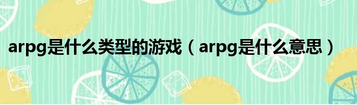 arpg是什么类型的游戏(arpg是什么意思)