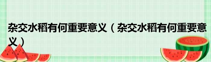 杂交水稻有何重要意义(杂交水稻有何重要意义)
