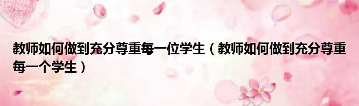 教师如何做到充分尊重每一位学生(教师如何做到充分尊重每一个学生)