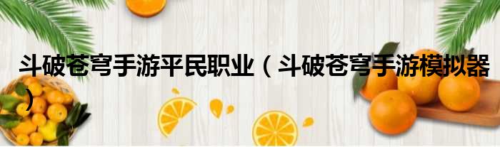 斗破苍穹手游平民职业(斗破苍穹手游模拟器)