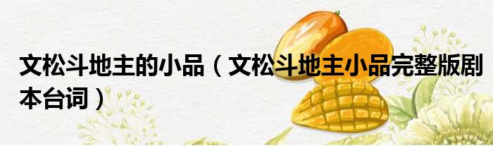 文松斗地主的小品(文松斗地主小品完整版剧本台词)