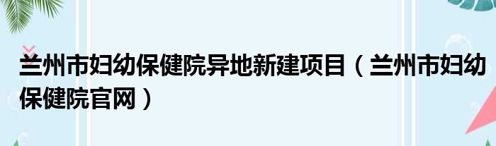 导读 大家好,今天小六子来为大家解答以下的问题,关于兰州市妇幼保健院异地新建项目,兰州市妇幼保健院官网这个很多人还不知道,现在让我们一起