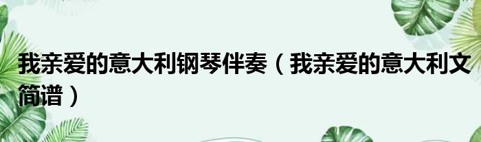 导读 大家好,今天小六子来为大家解答以下的问题,关于我亲爱的意大利钢琴伴奏,我亲爱的意大利文简谱这个很多人还不知道,现在让我们一起来看看