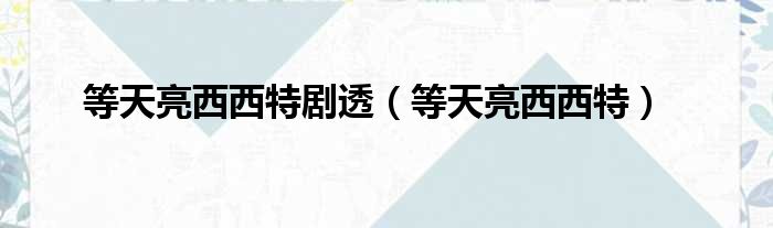 等天亮西西特剧透(等天亮西西特)