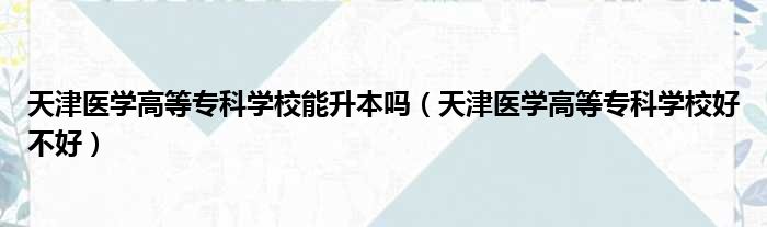 天津医学高等专科学校能升本吗(天津医学高等专科学校好不好)